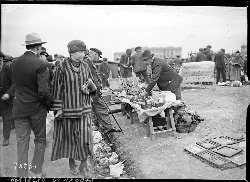 On la trouve sur les cartes postales dès 1900. Les Puces de Saint-Ouen ont été créées en 1885. C’est la date officielle, mais il y avait déjà des vendeurs à cet endroit.